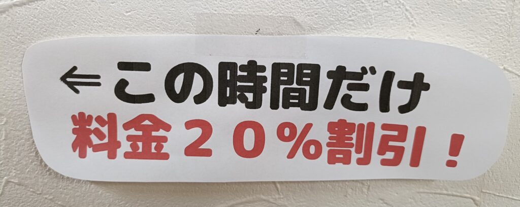 当日の空き予約を埋めたいので、当日の空き時間のみ 20%割引 します!
